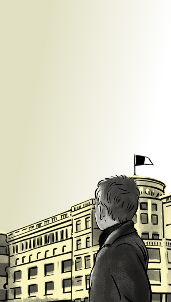 Onkel Wanja wohnt im Stadtzentrum, auf der anderen Seite des Metallwerks, das in Stalino zwei Stadtteile voneinander trennt. Wowa kennt den Blick auf das Werk sehr gut. Mit seinem Onkel geht er oft über die Fußgängerbrücke, die direkt über das Werk führt. Tagsüber wähnen sie sich dort in Sicherheit. Es gab zwar schon mehrere Bombardierungen der Stadt, insbesondere rund um Industrieobjekte wie das Metallwerk. Doch das passiert in der Regel nachts: Dann erhellen Suchscheinwerfer den Himmel, die Flugabwehrgeschütze donnern, Jagdflugzeuge versuchen, die Bomber abzufangen oder zu verjagen.