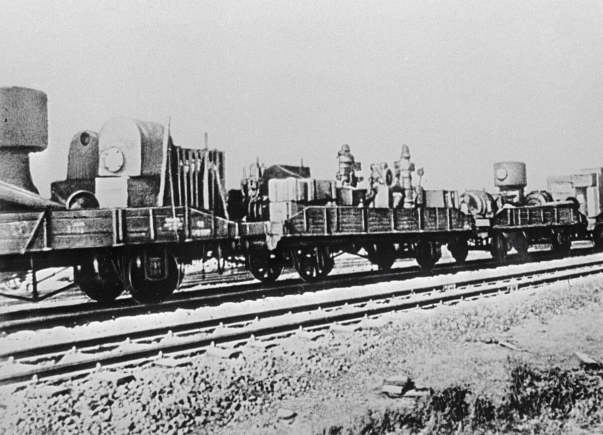 Im Oktober 1941 – kurz zuvor hatten Hitlers Truppen die ukrainischen Industriestädte Saporishshja und Dnipropetrowsk (heute – Dnipro) eingenommen – beginnen die Sowjets, westlich von Stalino die ersten Bergwerke des Donbas zu sprengen. Auch die Verkehrsinfrastruktur sollte den Deutschen nicht in die Hände fallen, also werden Bahngleise und Brücken zerstört. Währenddessen müssen noch Industrieanlagen abgebaut und weggeschafft werden. Ohne die Schiene wird bald alles zum Transportmittel, was noch vier Räder hat.