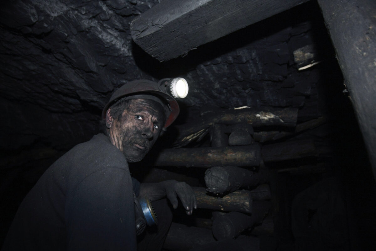 Blick auf die Abraumhalden und die Übertageanlagen des Bergwerks „Schachtarska-Hlyboka“. Im Hintergrund: Schornstein und Kühlturm des Heizkraftwerks. Schachtarsk, Oblast Donezk, Ukraine. 2010 / Foto © Arthur Bondar Blick auf das Gelände und eines der Übertagegebäude des Bergwerks „Schachtarska-Hlyboka“. Schachtarsk, Oblast Donezk, Ukraine. 2010 / Foto © Arthur Bondar Bergleute bei der Kohleförderung im Bergwerk „Schachtarska-Hlyboka“ in mehr als 1.500 Metern Tiefe. Schachtarsk, Oblast Donezk, Ukraine. 2010 / Foto © Arthur Bondar